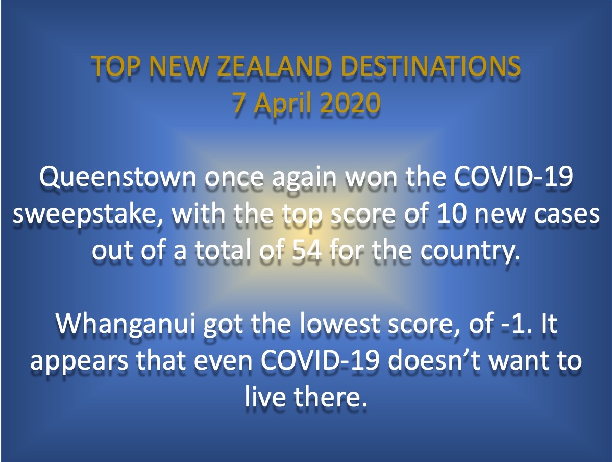Today I consulted a panel of censors in regard to my insertion of this joke. They warned me that I might find myself apologising, yet again, however I am confident that you will understand the reverse snobbery in the humour (and our daughter said I should go for it!). For people from offshore, Queenstown has been the booming tourism and holiday destination of New Zealand for over 100 years. Whanganui has had a chequered history, and has not been seen as a particularly desirable place to live.