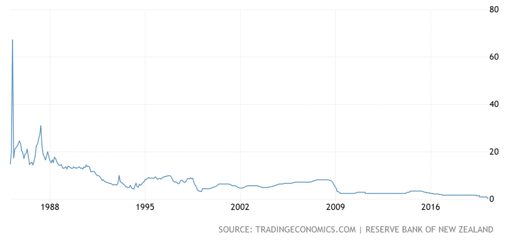 New Zealand Reserve Bank cash rate 1986 to 2020