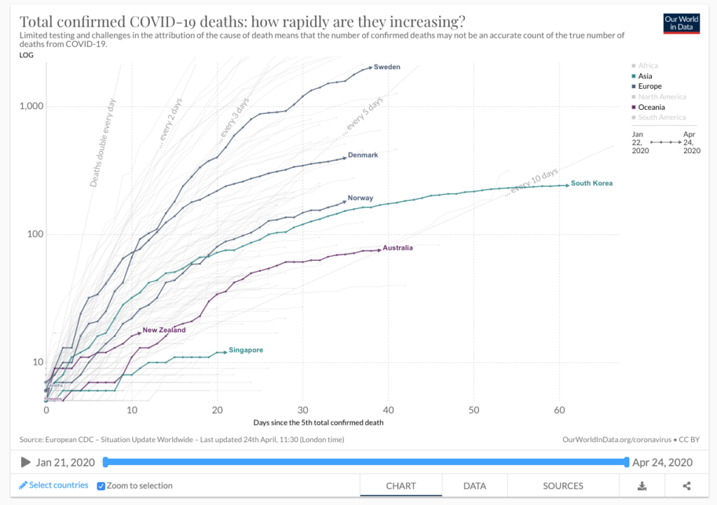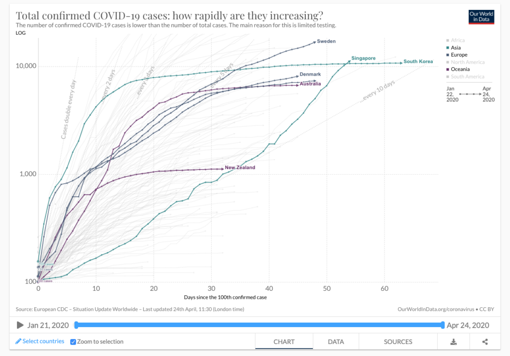 Another country’s experiment that has become more and more interesting has been Sweden. They chose not to undertake the level of lockdown of their European neighbours. They have more cases and more deaths than Norway or Denmark (and substantial numbers of people in old age care have died), but their medical systems have not been overwhelmed. Their people have retained a far higher degree of freedom and their economy has been less impacted than in many countries throughout the world. International attitudes towards Sweden have veered between envy and condemnation (with the two of these being closely connected!). I don’t think that their experiment is yet played out to an extent that anyone should be making a final judgment. On thing that is clear from the data is that Sweden has not yet ‘flattened the curve’. Another country of interest was Singapore, which appeared to be well under control in the early days, but saw an outbreak develop in foreign worker accommodation which they have not yet got back under control.