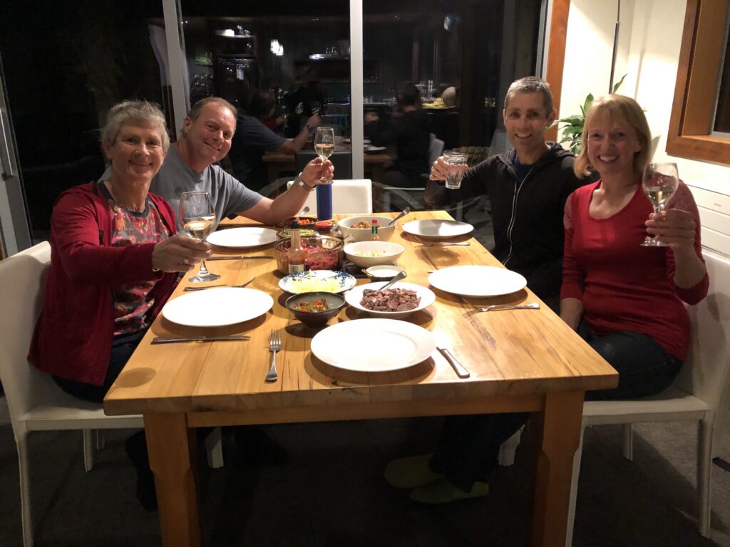 Level 2 arrived and I finally got my drink of water. On Thursday we had lunch with our friends Cleone and Peter at their house in Queenstown. And on Friday night, so exciting, we spent the night away from home! We got to have dinner and breakfast with our friends John and Diana and Nina (and Baxter the dog) in Hawea Flat, as well as chatting to their neighbours in the morning. Diana said the same thing, she had walked up Isthmus Peak in the morning with two friends. They talked the whole way up, not even noticing the 1000m climb and the drizzle, and she realised how much she had missed just catching up with people.