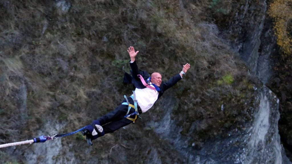 Here's Mayor Jim Boult. I think he is the wrong leader for the times, with a strong business focus and business-focused inner circle. But it was hard not to like his enthuasiasm for having the first bungy jump off the Kawarau Bridge at dawn on Thursday.Is Jim Boult a successful leader? He has acted with decisiveness and speed in matters which include public transport (tick), support and compassion for unemployed migrants in Queenstown (tick) and supporting the district’s increased reliance and focus on tourism (cross). He is visible and enthusiastic (tick), but has also apparently colluded with parties regarding the Queenstown Airport Company proposed expansion in what seems underhanded and deliberately obscure to the public (cross).
