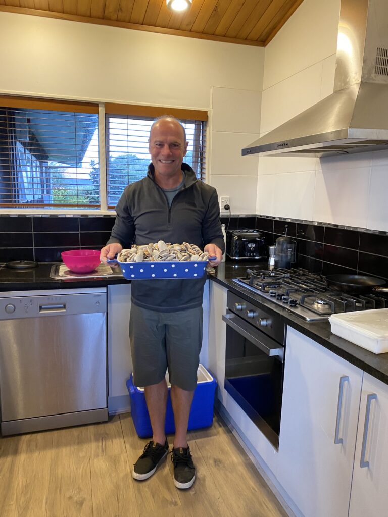 Below: Tony post-shucking tuatua