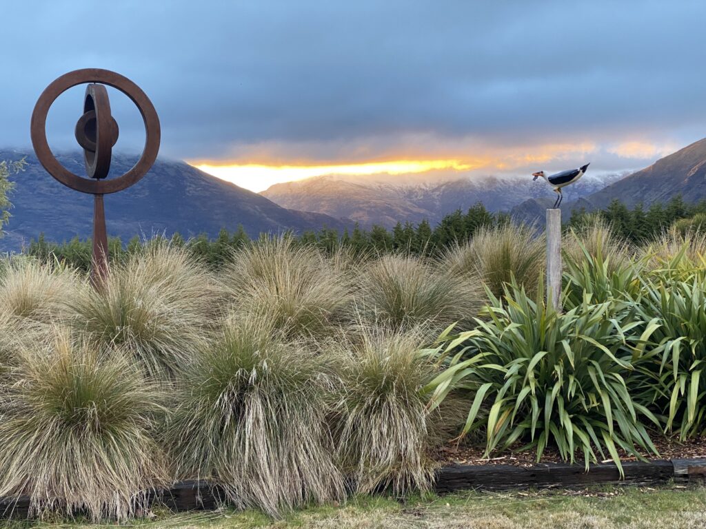 I’m back to taking comfort from the mountains – lucky me (got to remember to count one’s blessings as well as breathing deeply). I made a mad dash for Gibbston yesterday afternoon, actually I was coming home yesterday from Christchurch anyhow but it started to feel like a mad dash as the news rolled in from shortly after I left Christchurch. I can always find something in the weather and mountains that reflects my mood and lifts it up a notch. We had some Australians staying for three weeks in our barn and the young woman insisted her partner lock the door and sleep with a hatchet under the bed. No hatchets for me – the country feels like a very safe place to be, both in general, and in this particular place. And I have eight chickens to protect me.
