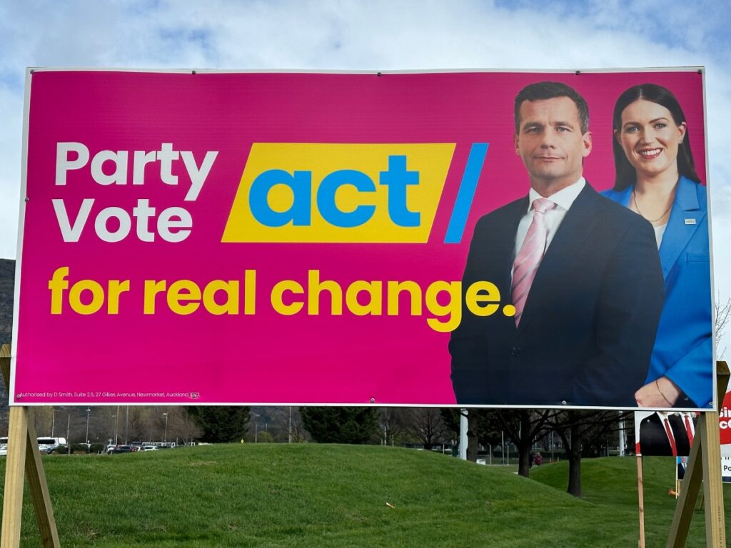 ACT suggests you vote for real change. Again, not bad as a slogan. However, David Seymour has a worse expression on his face than Chris Hipkins, like he was pressing his lips together, someone asked him to smile and he got caught halfway in between. The pink background, mirrored in David’s tie, in reminiscent of Fonterra trucks. For me the middle-aged white man with a pink tie and the long-haired woman in a blue suit that reminds me of shop uniforms is a boringly obvious role reversal in colour.