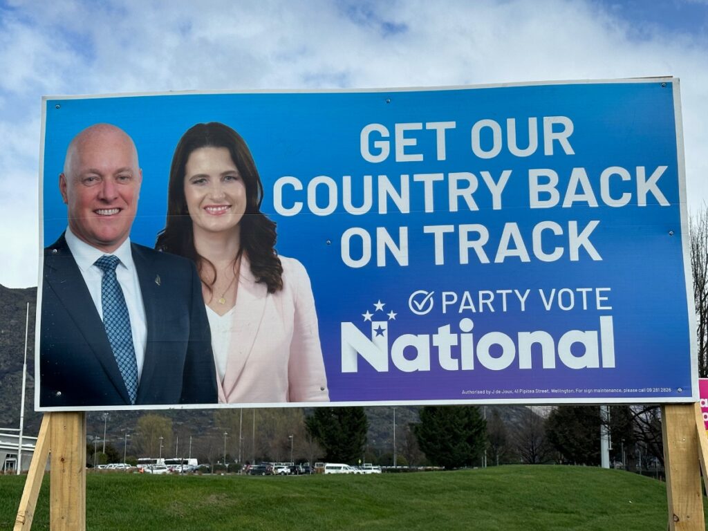 National is going to get our country back on track … with the implication that someone else took our country off whatever track it was supposed to be on. And supposing that it is possible to do something in an election term that might result in our regaining the theoretical track. Seems like a pretty standard conservative slogan. National looks like a party of large-faced white people who like blue.
