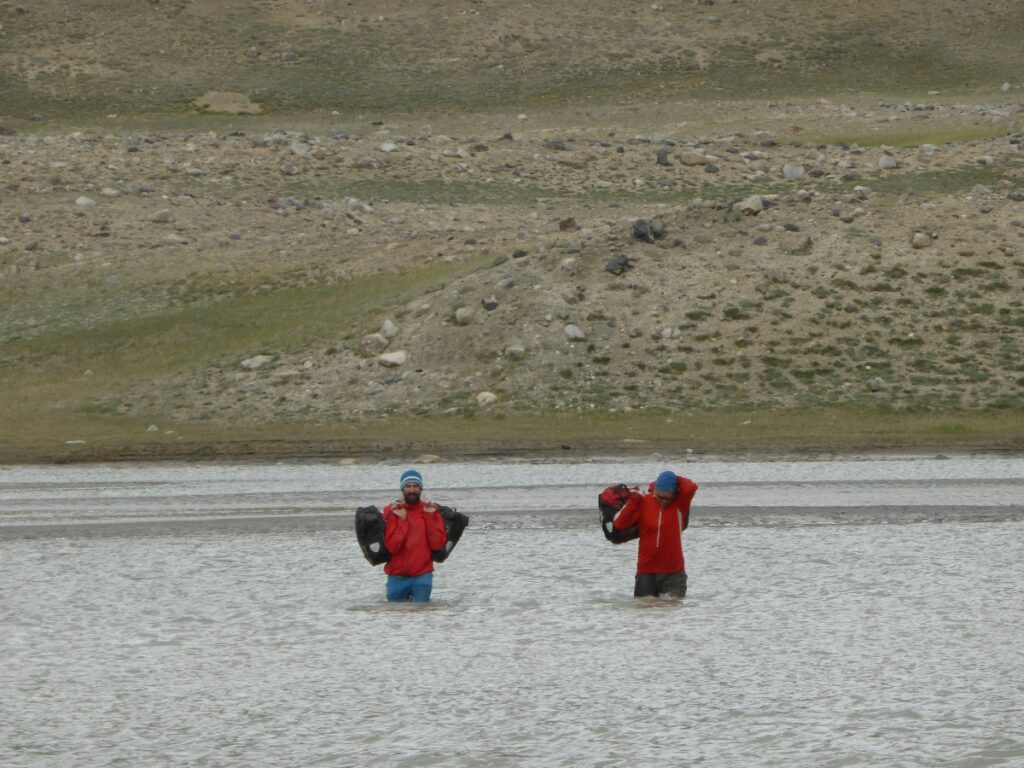 What constitutes a bad idea in Tajikistan? Attempting a river crossing because it will take a day or more to climb back up to a pass and we only have two more days of food? However, the water is flowing very slowly and there no rapids visible downstream; surely the worst that can happen is Chris goes for a swim then we have to put up our tents and get warm in our sleeping bags?