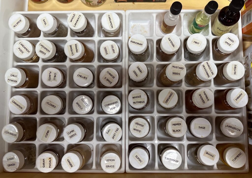 I’m trying a new approach in the vege garden this year, somewhat nervously. My vegetables have been planted in rows, often two abreast, but the general principle has been rows. That’s me – I like my labelled herb and spice drawer. You can tell I’m not really OCD because, if I was, I would have lined up all the names on the containers.