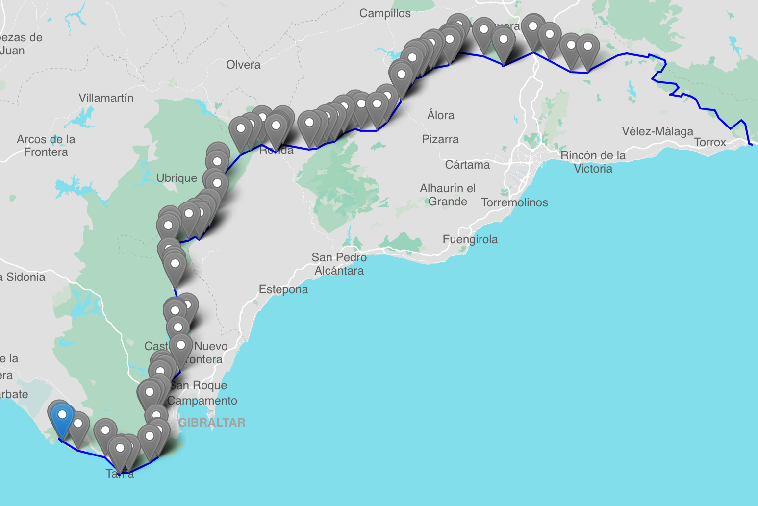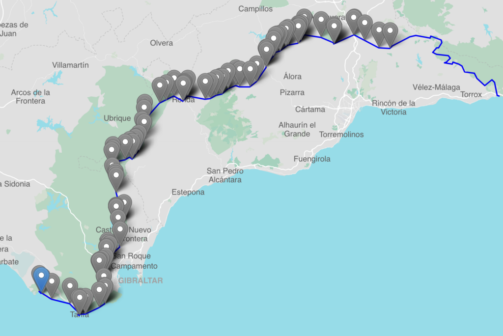 We just finished walking 450km in southern Spain from Maro on the Spanish Mediterranean Sea, to the coast of the Atlantic – ending in Bolonia. The ‘Coast to Coast’ walk looked interesting and the claim of walking between two seas sounded like a good rationale for a trip.