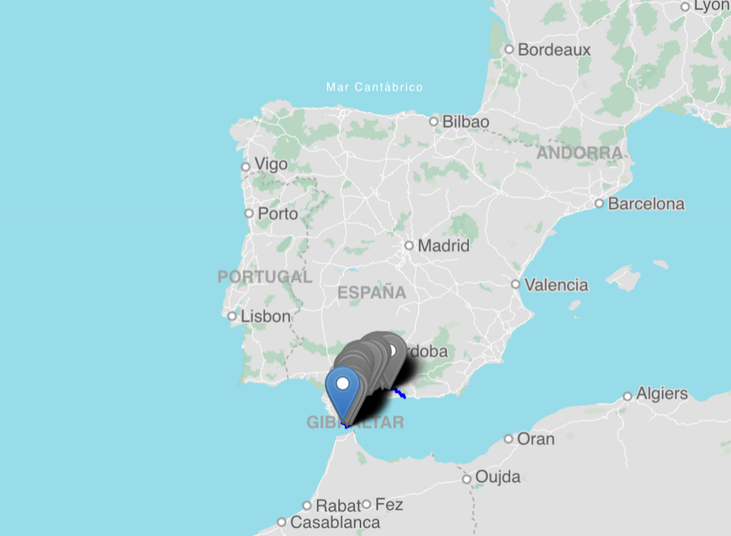On the left of the picture is the Mediterranean Sea and on the right is the Atlantic Ocean
