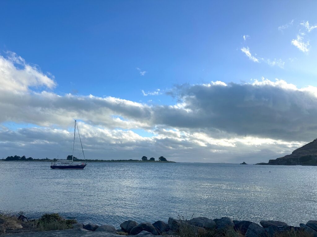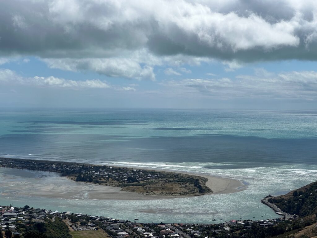 When I was cycling from Sumner to Redcliffs last week there were crowds of people lining the edge of the estuary. I stopped and asked what everyone was looking at. It turned out to be a barely visible whale beached on a sand bar in the middle of the estuary – a few spouts of water could be seen (you can’t see anything in the middle picture in which the whale is in the centre, nor in the picture from above which shows the sandbar on which the whale beached). I felt upset and didn’t want to stand on the beach with all the people staring at an animal that was likely dying. If you were on your death bed, would you want a crowd of people staring at you? Even if they were all talking about how sad your death might be?