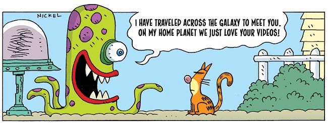 I made a nice ham and lettuce sandwich then put my feet up in my La-Z-Boy; hosting aliens was tiring. Next thing, I heard a knock on the door. It was Clarisse from 63. “Have you seen Bobby? I’ve been calling everywhere. He always comes for dinner.” Bobby is a standoffish Siamese with whom I’ve tried to make friends by secretly feeding him bacon.