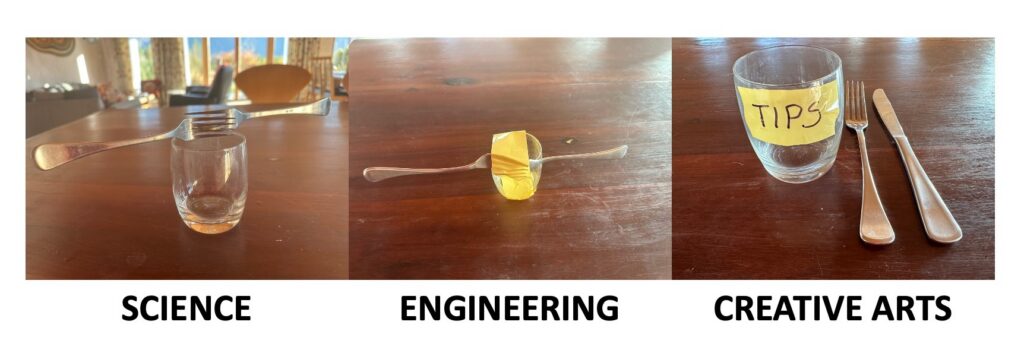 Another take on the rewards for being in science or creative arts is to consider relative salaries. I asked Google and ChatGPT (I wish ChatGPT could be more brief in its answers – it needs a verbosity-off switch). They suggested $52-115k for a scientist and $36-77k for Creative Arts i.e. you get paid twice as much to be a scientist. However, many creative arts workers are self-employed, or have another job to fund their arts endeavours (I don’t know many scientists who do that!), so I am guessing the average and minimum salaries for creative artists are substantially lower than statistics suggest.