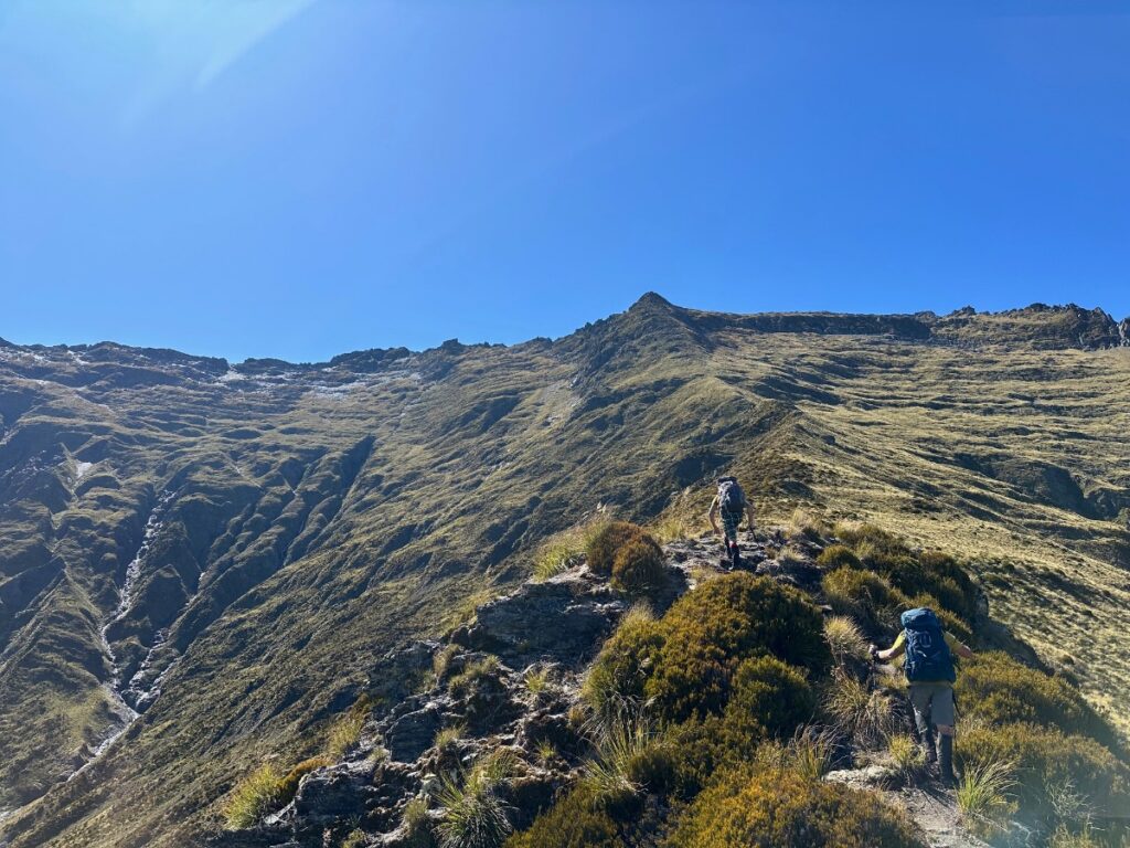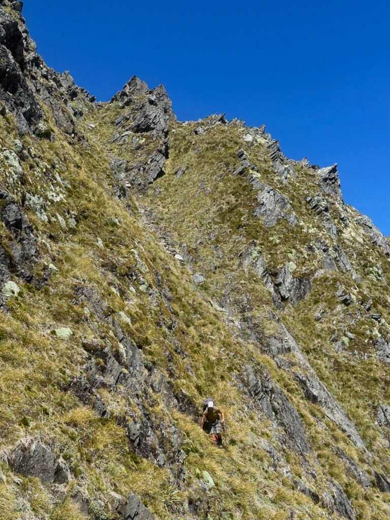 - Surviving a scary teeter along steep tussock slopes.