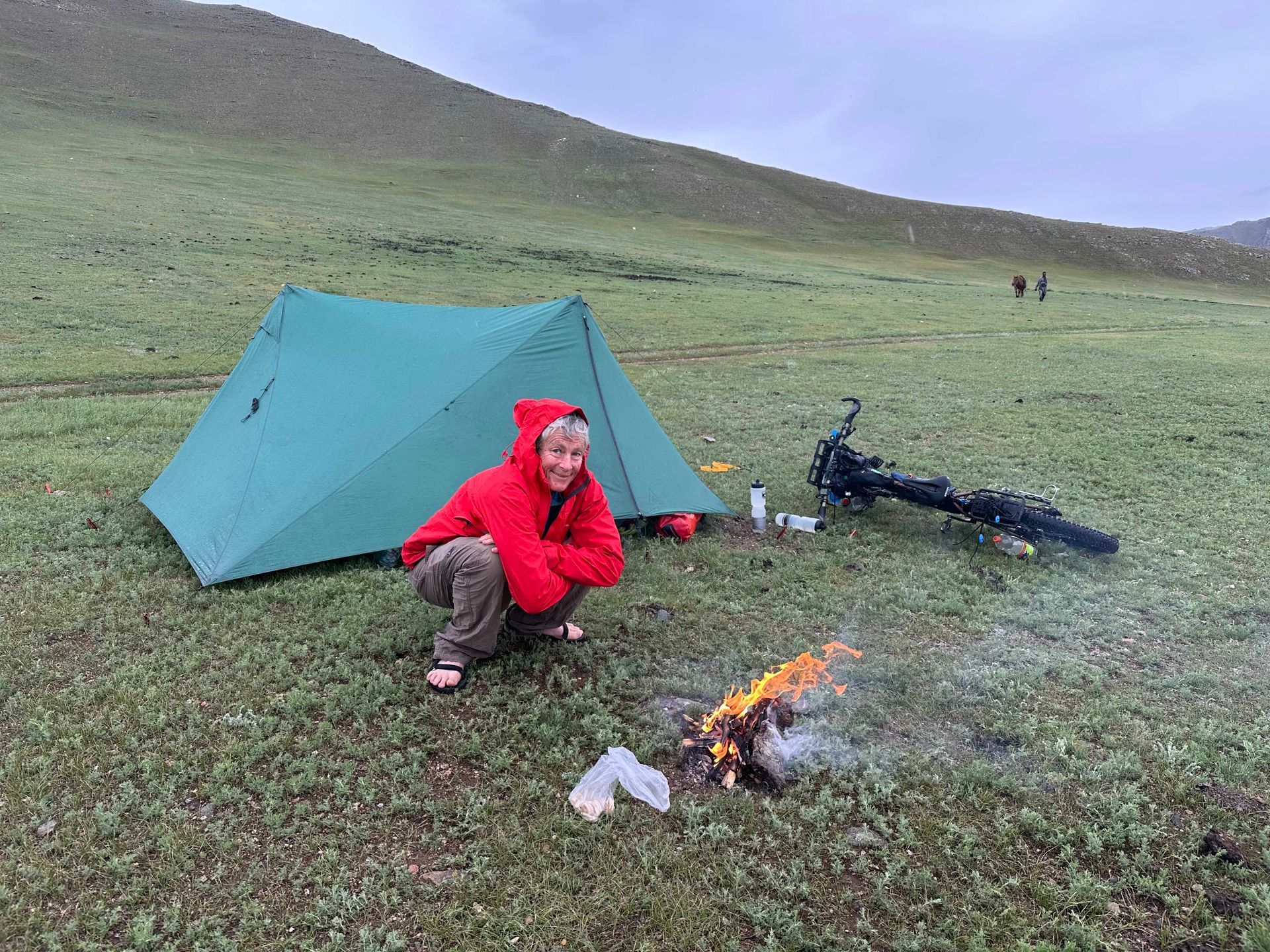 We could pick up the plastic and take it to a town. But we can't carry much plastic on a bike loaded with luggage, compared with all the plastic we cycled past. And what do people in Mongolian towns do with plastic? There's little rubbish collection in Mongolia, just like there's no reticulated water or sewage. No rubbish collection might work when all your waste is organic so can break down in the environment. But it doesn't work once the quantum of non-biodegradable waste escalates. So Mongolians either heap rubbish in large piles or, more commonly, burn it!