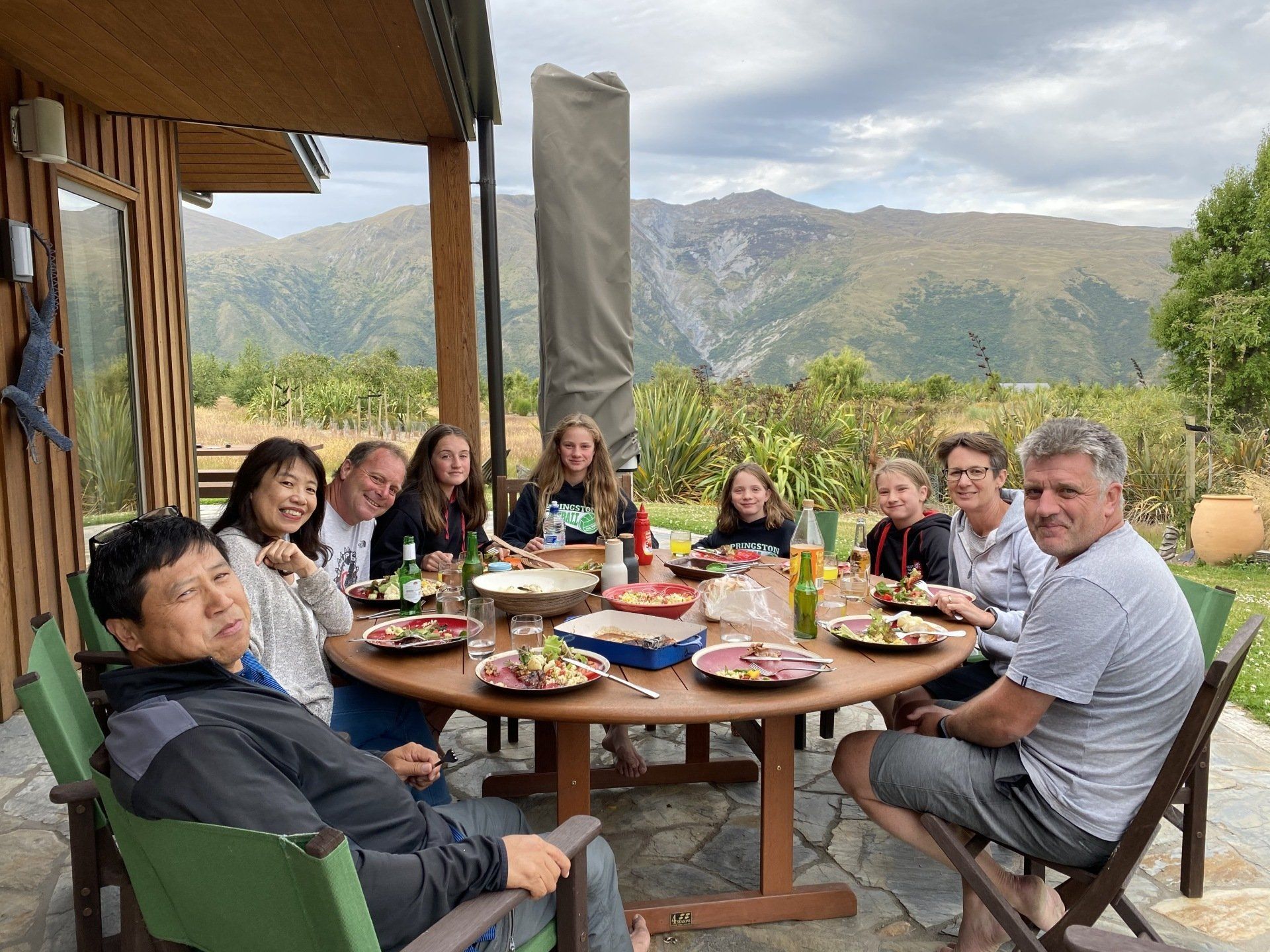Pre-COVID-19 dinner with 8 visitors at pa harakeke, Gibbston