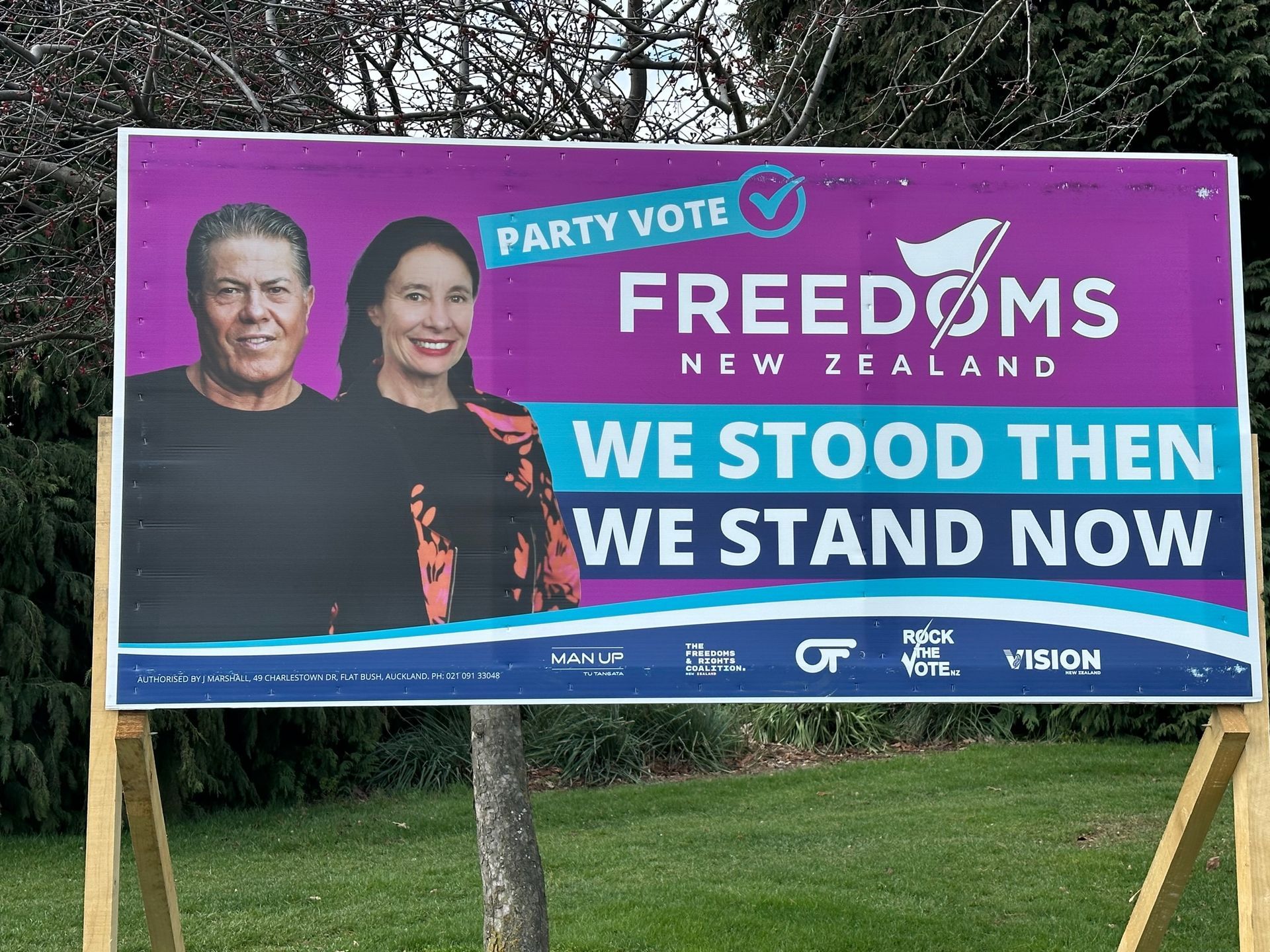 I should have been quicker off the mark in recognising the face of Freedoms New Zealand. I also got a bit confused by the number of names of entities on the posters - according to the website they consist of four entities which are 'umbrella parties and affiliates'. I do wonder when 'Then' was and why their standing at that time was important. Freedoms NZ do get points for the most women depicted of any of the parties and the most Māori. Also for a raft of colours - four different colours between the two posters, although blue is a strong theme.