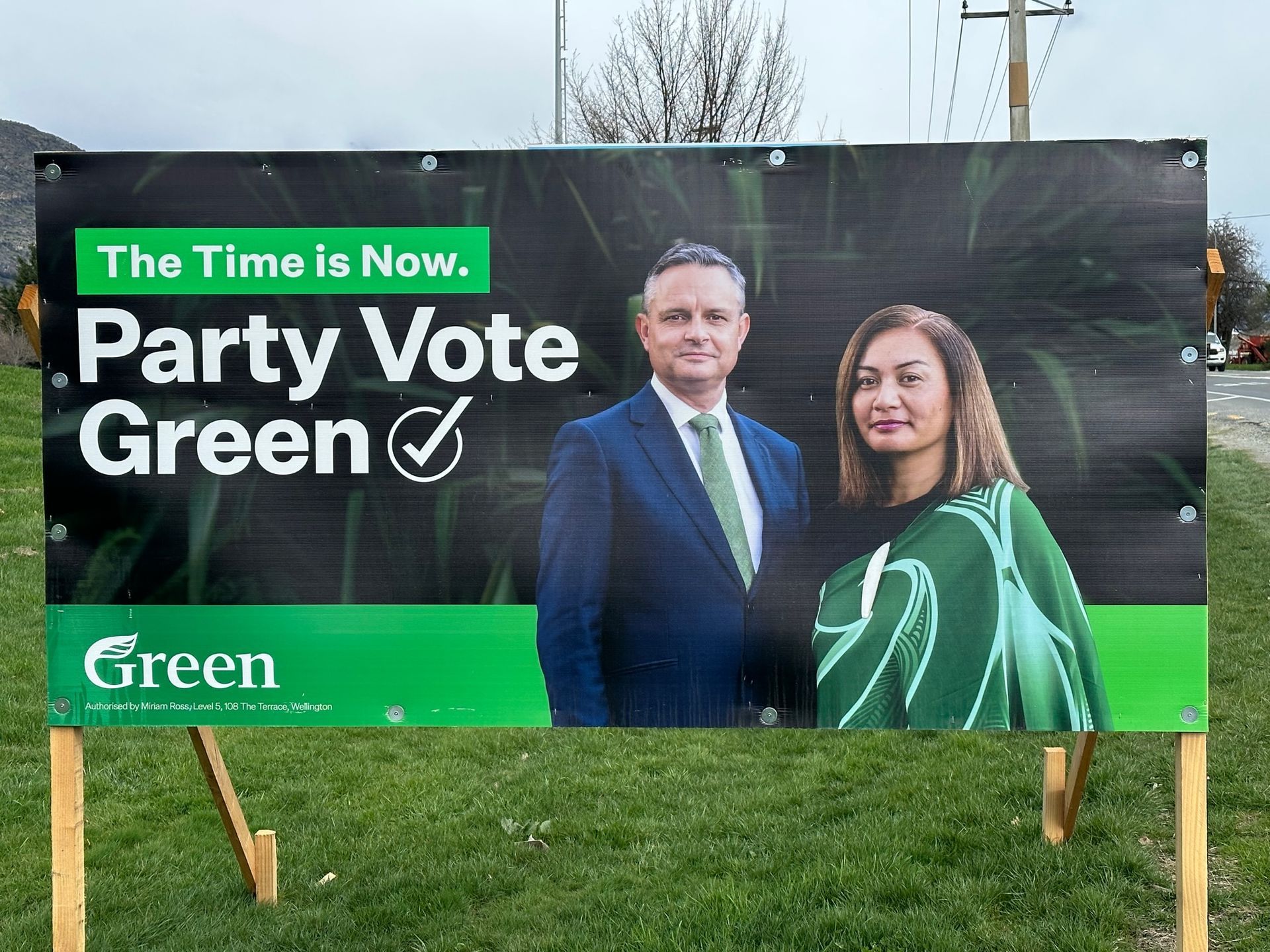 The Time is Now, according to the Green Party. Not bad as a call to action. Although, does this mean the past election was not the time to vote Green and the next election might not be, either. Is it only sometimes the time to vote Green? The Green Party has a standard white middle-aged man and a Māori woman. The man vacillates between blue and green while the woman likes green. Might the man therefore appeal to blue-lovers?