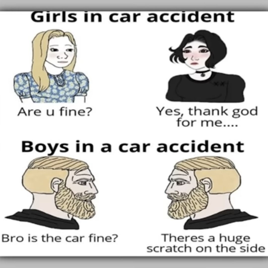 “He hit our car!” the younger male said. The younger woman was holding her phone with the speaker on – I could hear a voice squawking in the background.