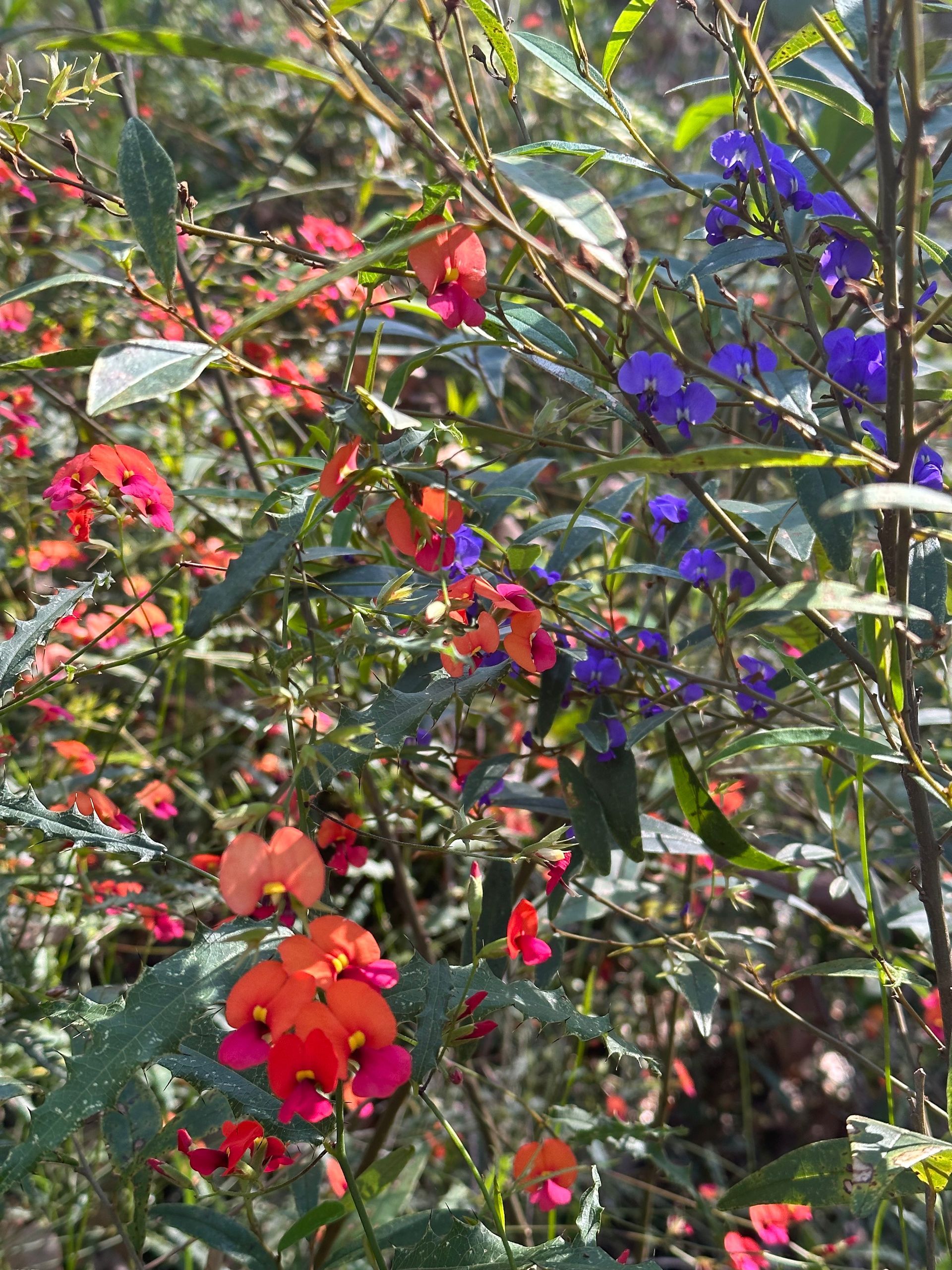 As I’ve cycled, I’ve wondered about knowing the names of Australian plants. The point being, I don’t know most of them. I can have a reasonable guess at the family some plants belong to, but that’s as close as I can get. I’ve discovered it’s quite liberating not feeling the need to know the names of plants. I can just take pictures of them because they are bright colours and pretty shapes. Do I need to know their names? If I was wanting to eat them I would want to know if they were edible, and knowing names is the easiest way of classifying and discovering that information. Or if I was wanting to grow them, thus needed to know more about their habits and habitats. Otherwise, no.