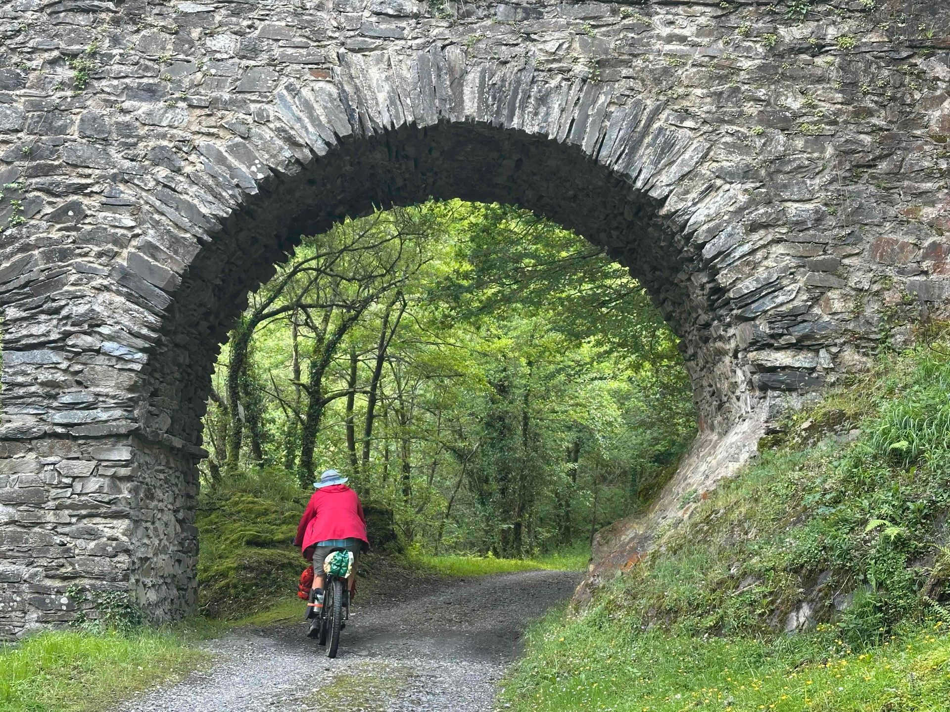 4. Chris cycling under a bridge on the Plazeolar (railway route)